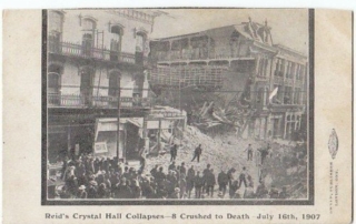 "Reid's Crystal Hall Collapses - 8 Crushed to Death - July 16th, 1907"Dundas St, south side, west of Clarence StThe building was undergoing renovations at the time of the ...